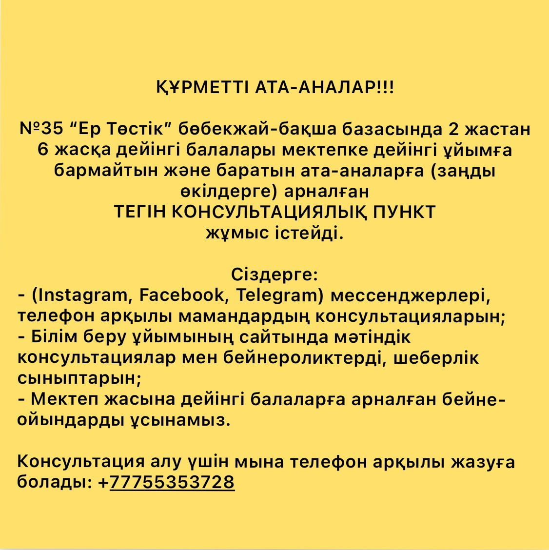 ХАБАРЛАНДЫРУ » №35 «Ер Төстік» бөбекжай-бақшасы
